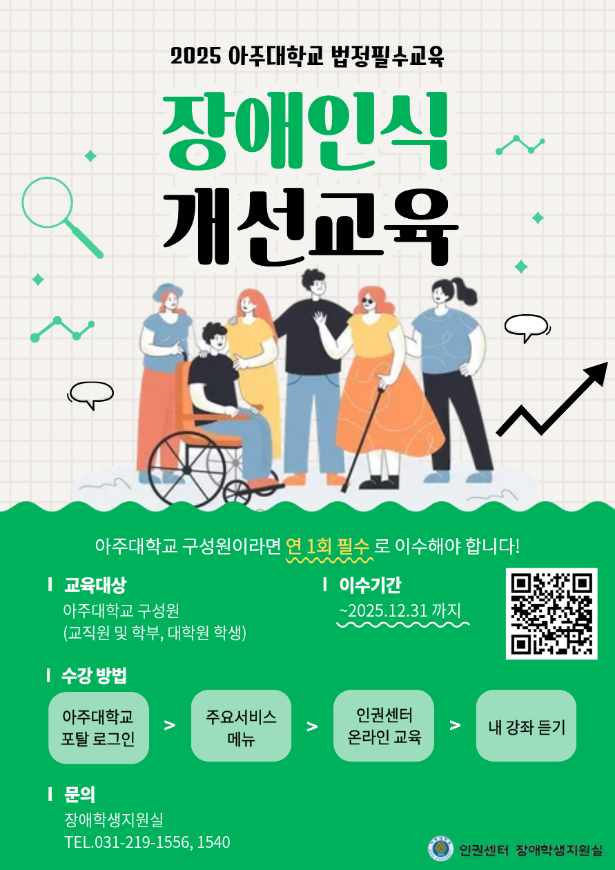 아주대학교 구성원이라면 연1회 필수로 이수해야하는 장애인식개선교육!