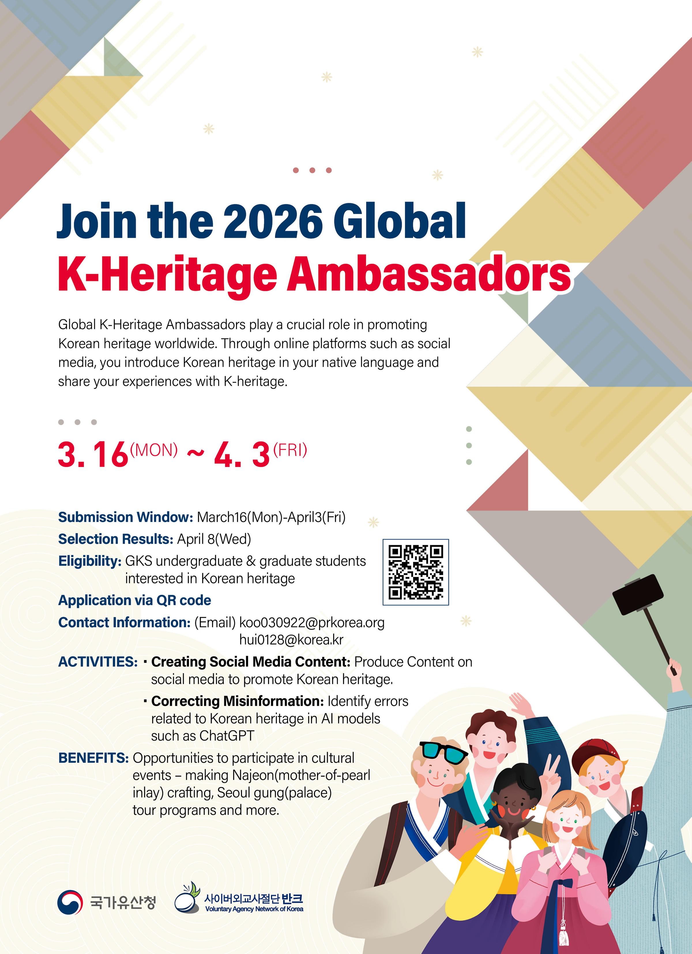 Join the 2026 Global Cultural K-Heritage Ambassadors (GKS students only)