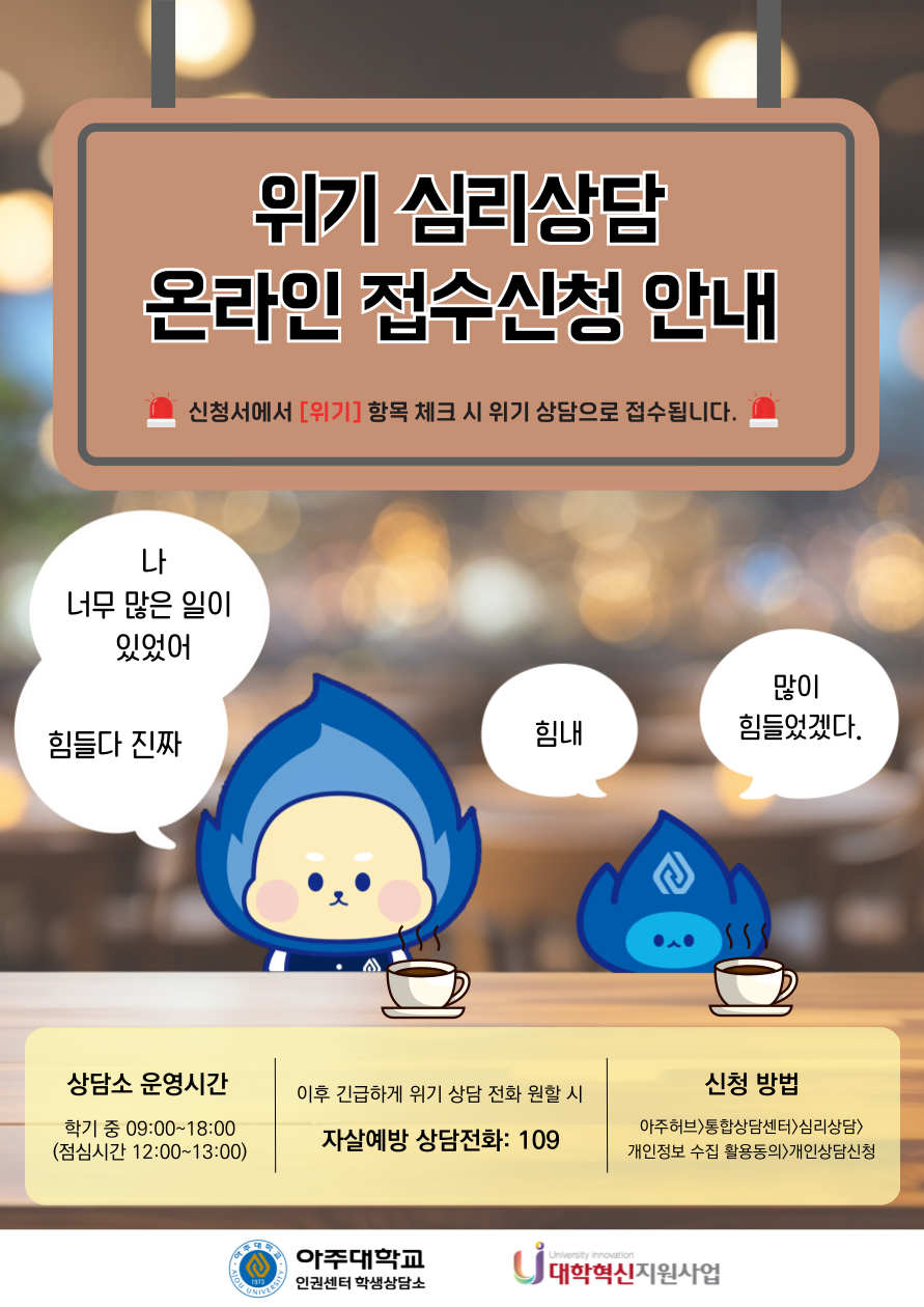 ์ƒ๋‹ด์†Œ์™€ ํ•จ๊ป˜ํ•˜๋Š” ์œ„๊ธฐ ์‹ฌ๋ฆฌ์ƒ๋‹ด์„ ์‹ ์ฒญํ•ด๋ณด์„ธ์š”.