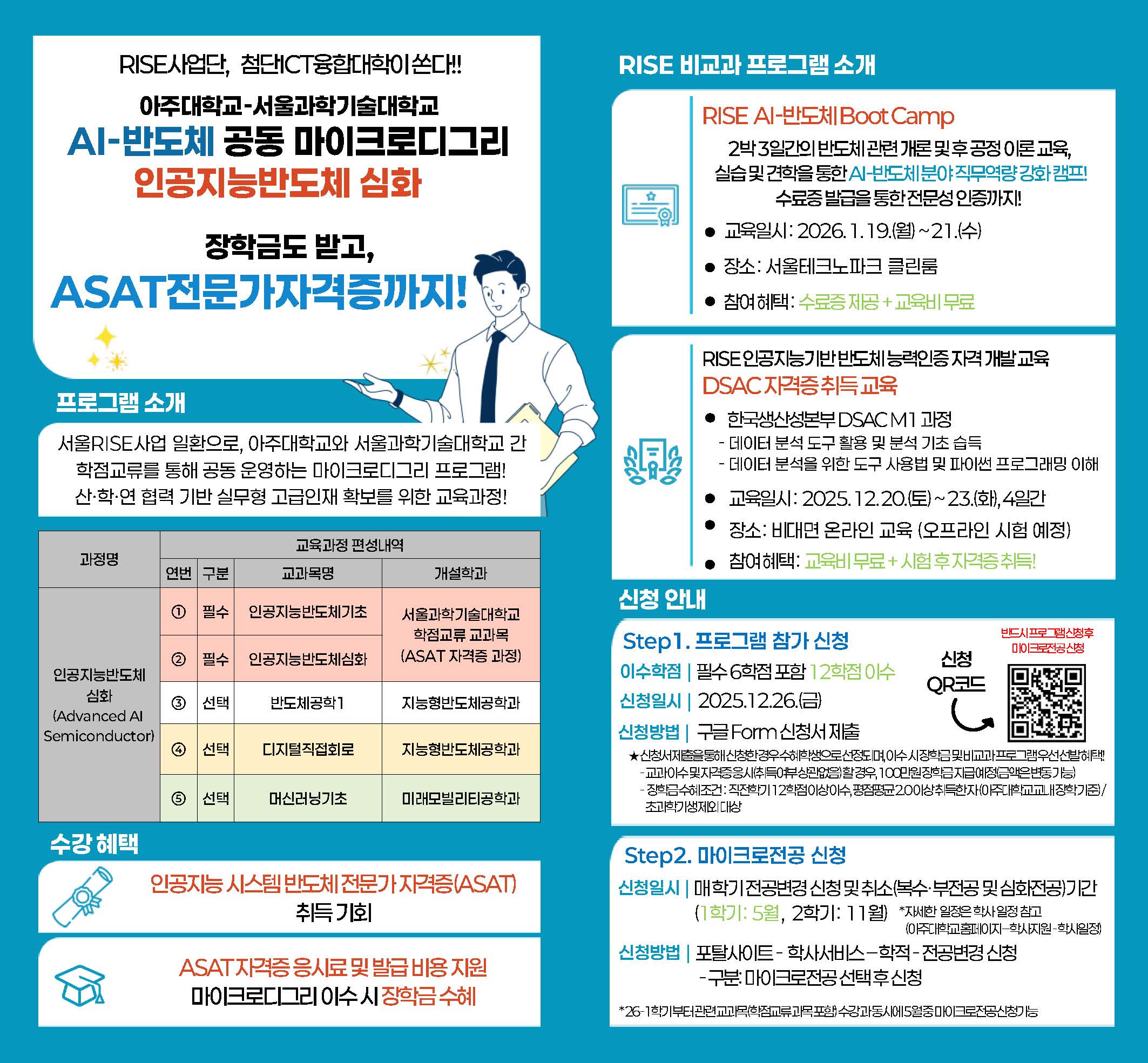 [학사] [RISE] (아주대-서울과기대) AI-반도체 공동 마이크로디그리 프로그램 신청(~12/26(금)까지)