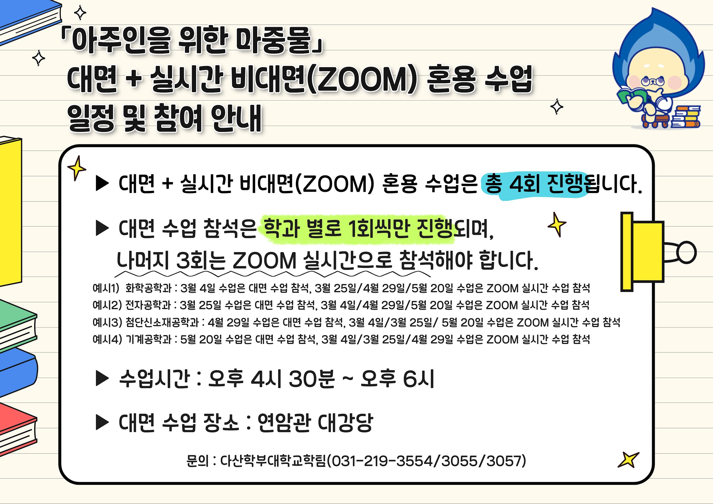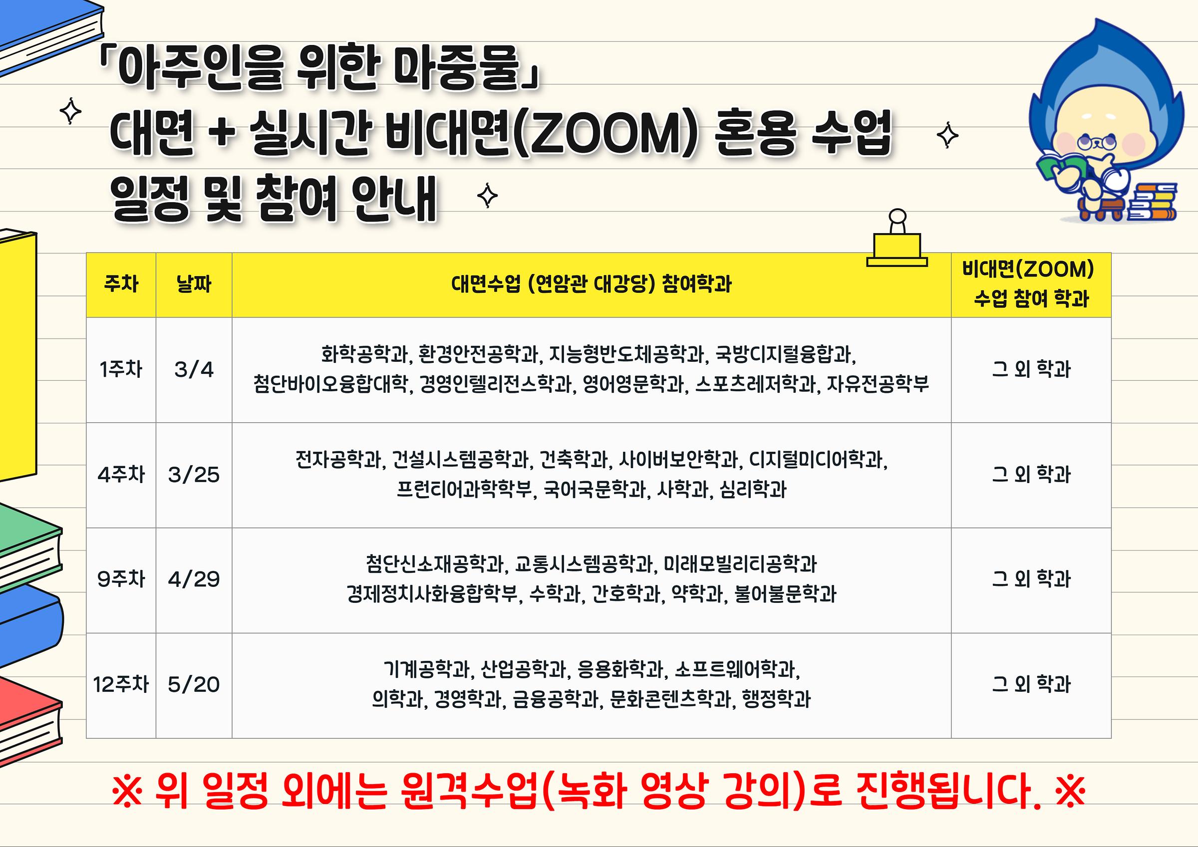 [학사] <신입생 필독!>『아주인을 위한 마중물』대면 + 실시간 비대면(ZOOM) 혼용 수업 안내